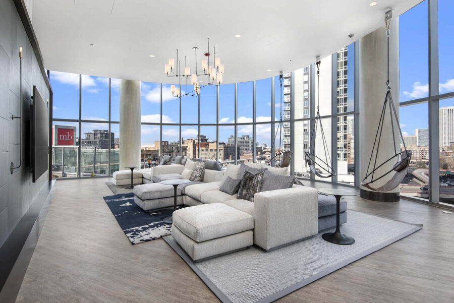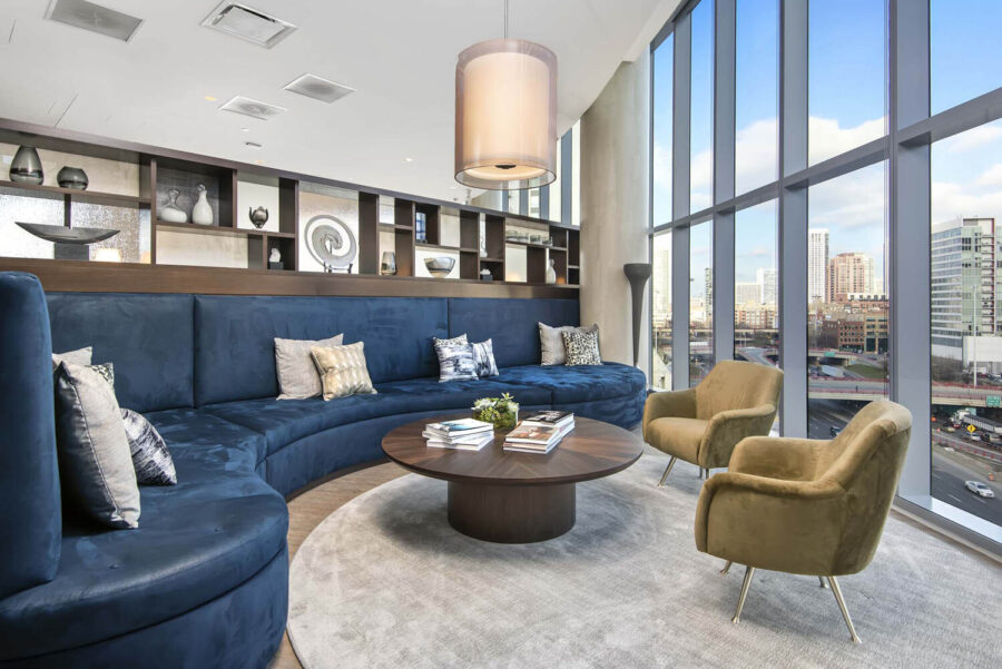 The Westerly is one example. The Atworth at Mellody Farm, E2, and 727 W. Madison are others. All are multi-family residential buildings designed with amenity spaces that tenants are drawn to – and that make a rental apartment unit feel more like a home. They feature killer lighting, gallery walls that make televisions seem to disappear even when they’re front and center, and clever, custom furnishings that break huge areas into smaller, more intimate rooms within rooms.